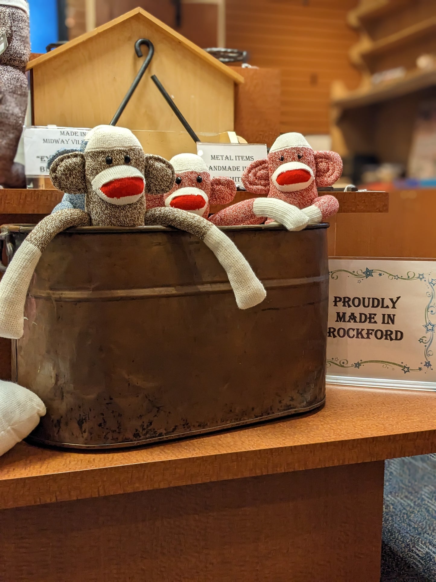 These one of a kind handmade sock monkeys are truly one of a kind. Skillfully crafted in Rockford by Carol using the original Rockford Red Heel Socks, a true collectors item and just plain fun item to have. This sports collection should have one of your favorites.